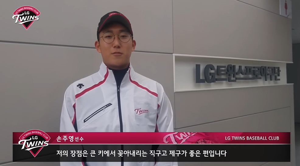 2017 시즌 LG트윈스의 신인투수 소개영상에 나온 손주영 선수 (화면 출처: 유튜브 LGTWINSTV)