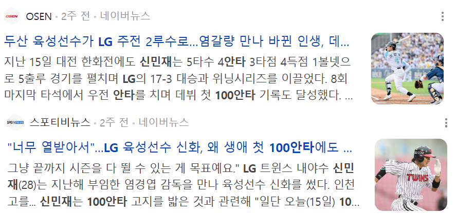 LG트윈스 현재 주전 중에도 육성선수 출신이 있는데 김현수, 박해민, 그리고 신민재 선수가 그렇다. 특히 요즘 신민재 선수는 LG 팬들에게 없어서는 안 될 존재가 됐다. LG의 취약점이었던 2루수 자리를 더할 나위 없이 완벽하게 채워준 데다 도루에 타격까지 되니 보배가 따로 없다. 최근엔 데뷔 첫 시즌 100안타를 기록했다.
