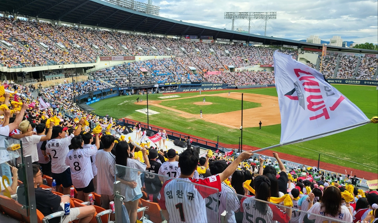 내 좌석은 1루 네이비석. 응원 지정석은 아닌데, 이날은 그런 개념이 따로 없는 듯했다. 1루의 거의 모든 관중들이 공격 때마다 일어났다. 날은 선선한데 분위기는 뜨겁다 못해 활활 타오르는 듯 했다. 직관을 자주 오다보니 응원 화력이 유난이 약한 날도 있는데, 이날은 정반대였다.