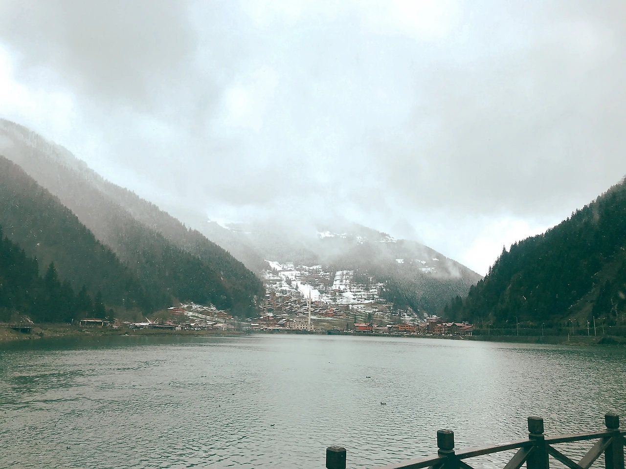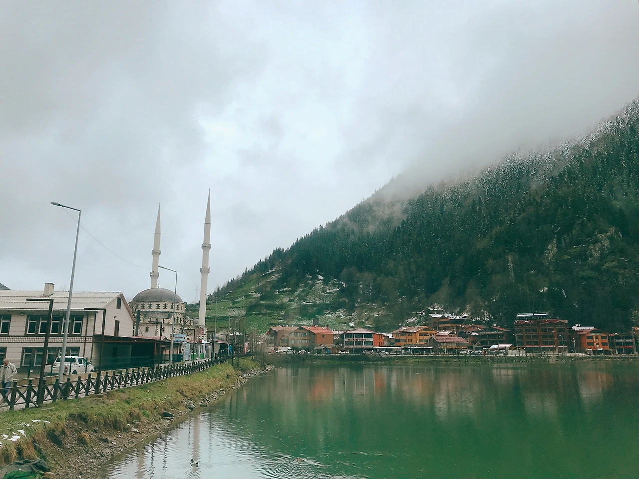 호수는 퍽이나 인상적이었다. 한편에는 이슬람 사원이 우뚝 솟아 있었고, 작은 나무다리를 건너 푸른빛 호수가 드넓게 펼쳐 저 있다. 빽빽하게 들어선 침엽수림 사이에 누군가 커다란 됫박을 들어 물을 채워 넣은 것처럼 비현실적인 풍경이 펼쳐졌다. 다소간 눈 비가 섞여 고요한 호수에 파문을 몇 일으켰다.