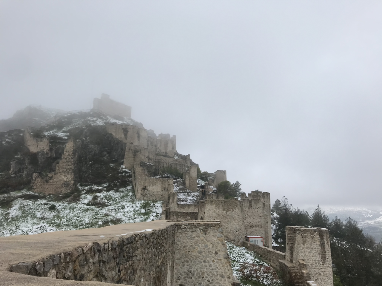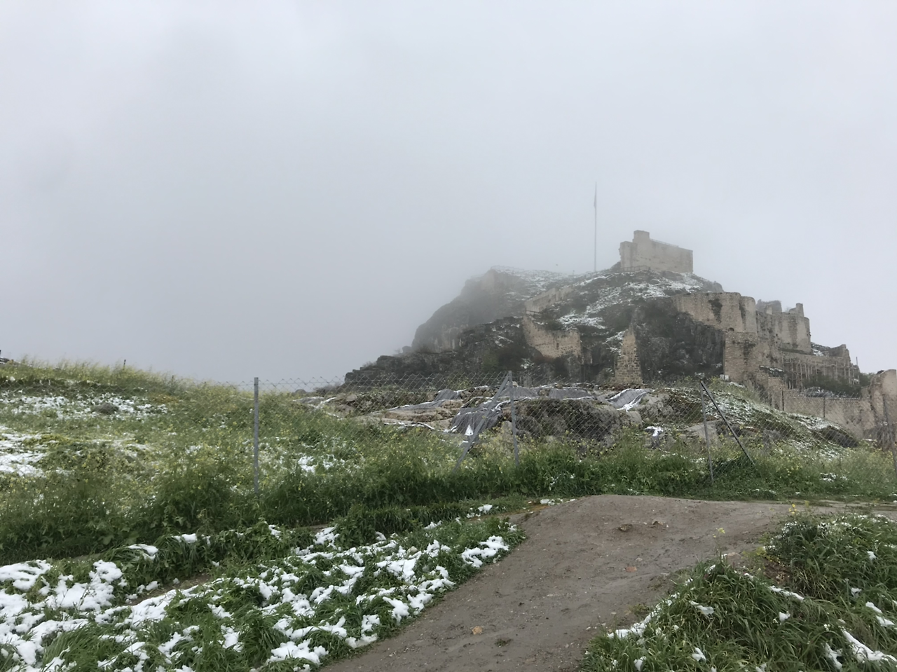 비록 첫 단추부터 잘못 꿰진듯 싶었지만, 멀리 성채의 모습을 마주한 순간 눈을 뗄 수 없었다. 안개와 눈이 내려앉은 성채를 찬찬히 살펴봤다. 우아한 중세의 성은 아니었다. 주로 이 지역에서 발견되는 석회암을 깎아 벽돌을 쌓은 성으로 여기저기 무너저 내린 흔적, 한창 보수공사가 진행 중인 모양이었다.