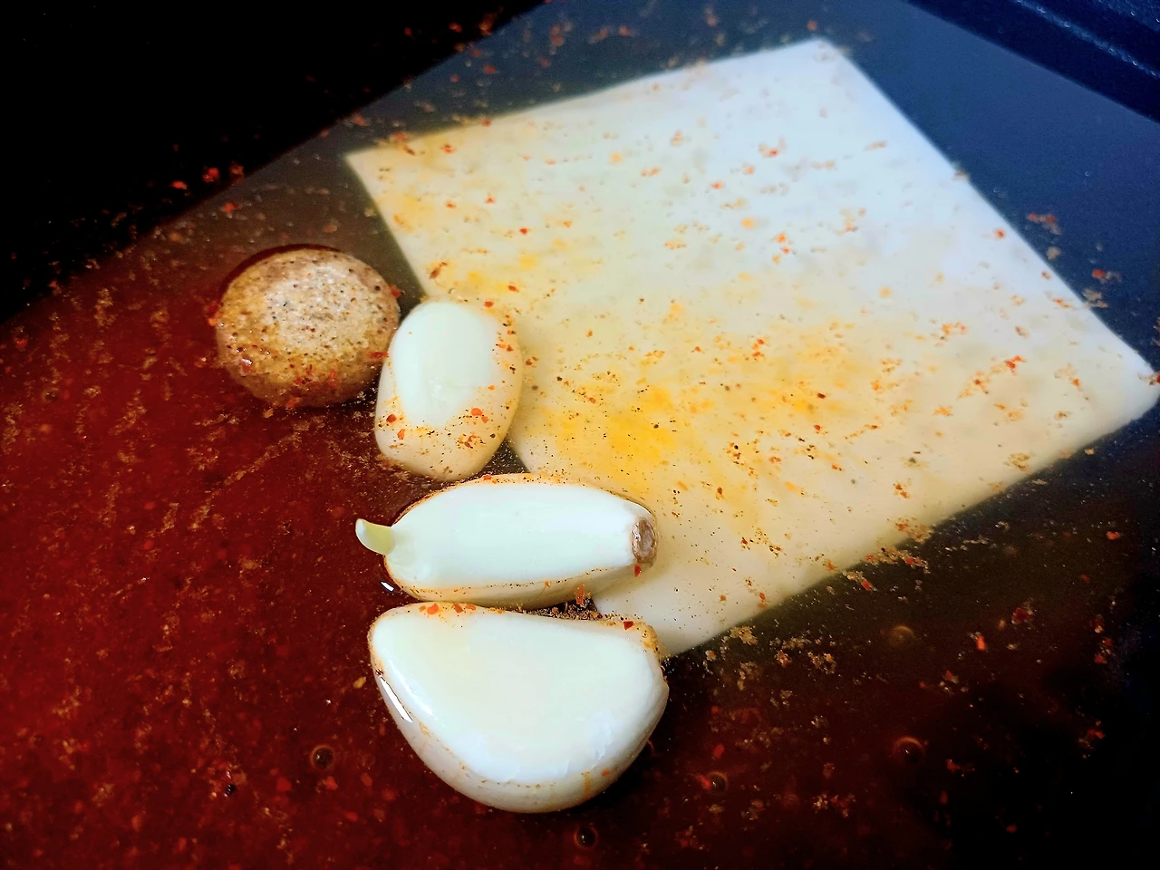 [2] 매운 것을 좋아하시는 분들은 저처럼 물 양을 더 넣으신다음 라면스프, 청양고추, 마늘, 고춧가루, 캡사이신 등을 더 넣어주세요.