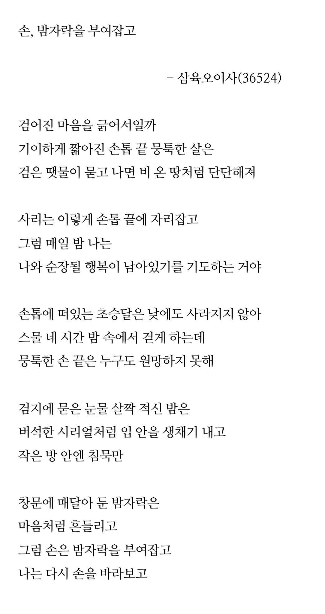 손, 밤자락을 부여잡고