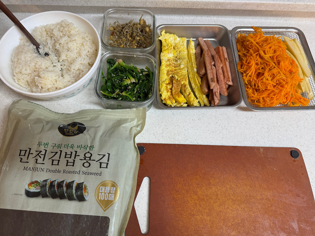 사정이 이렇다 보니 김밥이 손이 많이 간다고 기피하는 음식인 것을 나중에서야 깨달았다. 주변 아이들 친구 엄마들로부터. 나는 그저 김밥 장인이 되고 싶어서 수없이 말아재 낀 것 밖에 없는데.