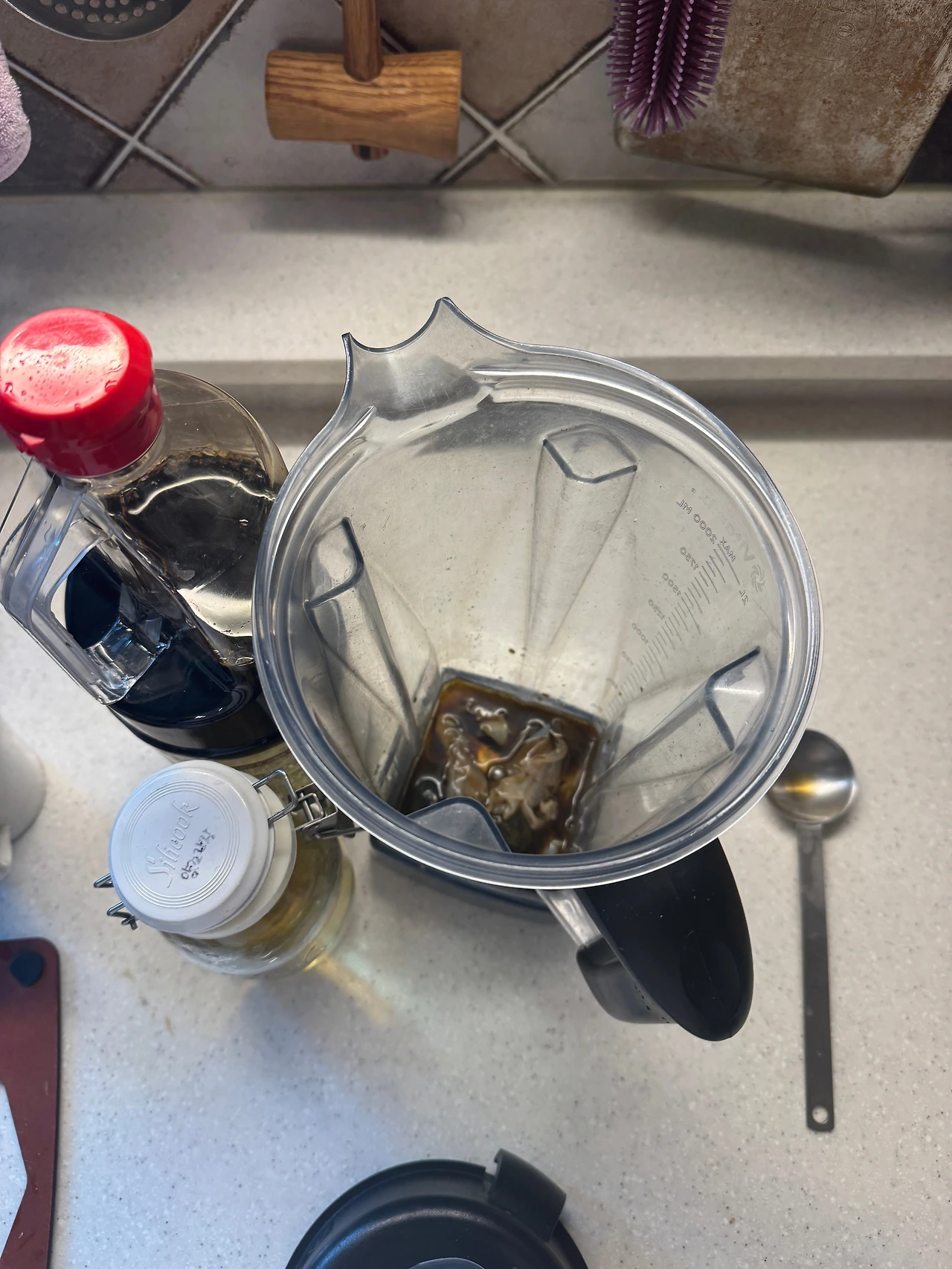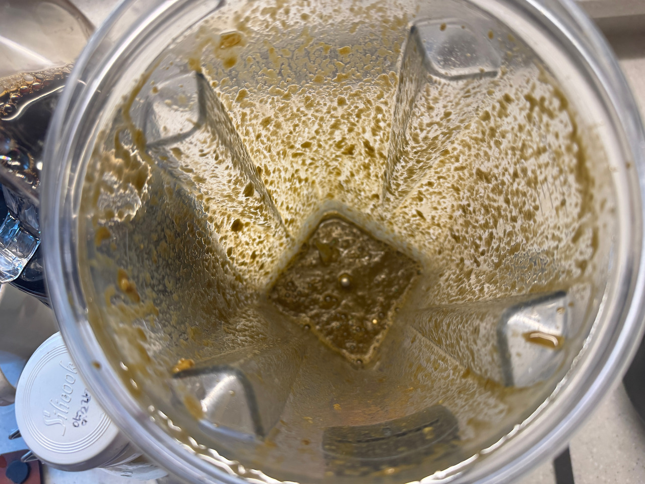 6. 전복 내장은 따로 모아서 믹서기에 넣고 물 100ML, 간장 2T, 맛술 2T를 넣어 갈아줍니다. 내장까지 넣어 끓이는 전복죽!