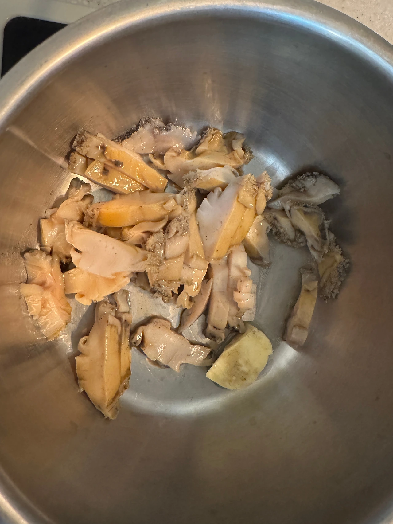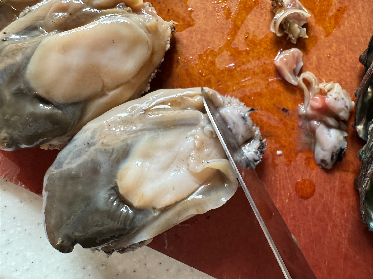 4. 전복 한쪽에 붙은 입을 떼어내 주세요. 입에 붙어있는 긴 실 같은 부분까지 함께 떼어내 주세요.