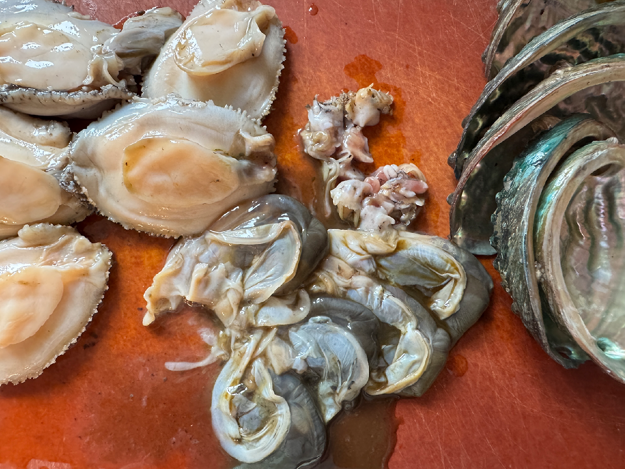 5. 전복에서 내장 부분마저 떼어내어 손질이 마무리해 주세요! 살, 내장, 입 분리 끝!
