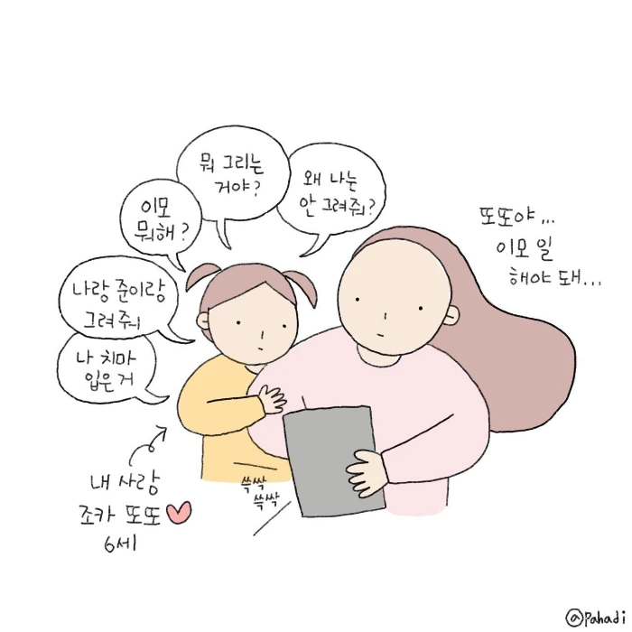 조잘조잘 궁금한 것도 많고 하고 싶은 것도 많은 아가들♡ 우리도 분명 저런 때가 있었겠죠? 지금은 가만히 있는 게 소원이지만요ㅎㅎ