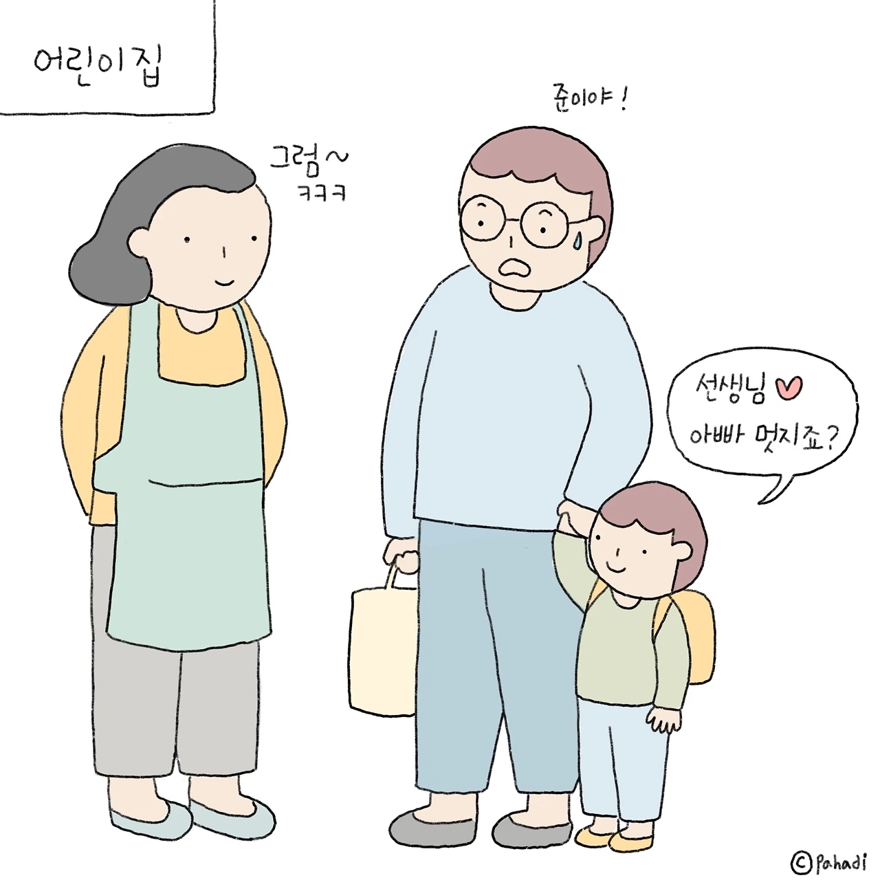 어린이집 선생님께까지 "아빠 멋지다"고 말했다 하니(그것도 아빠를 옆에 두고) 엄마가 아니라서 참 고맙다. 우리에게 아빠는 최고 멋지지만 누구에게나 아빠가 멋진 건 아니란다ㅎㅎ