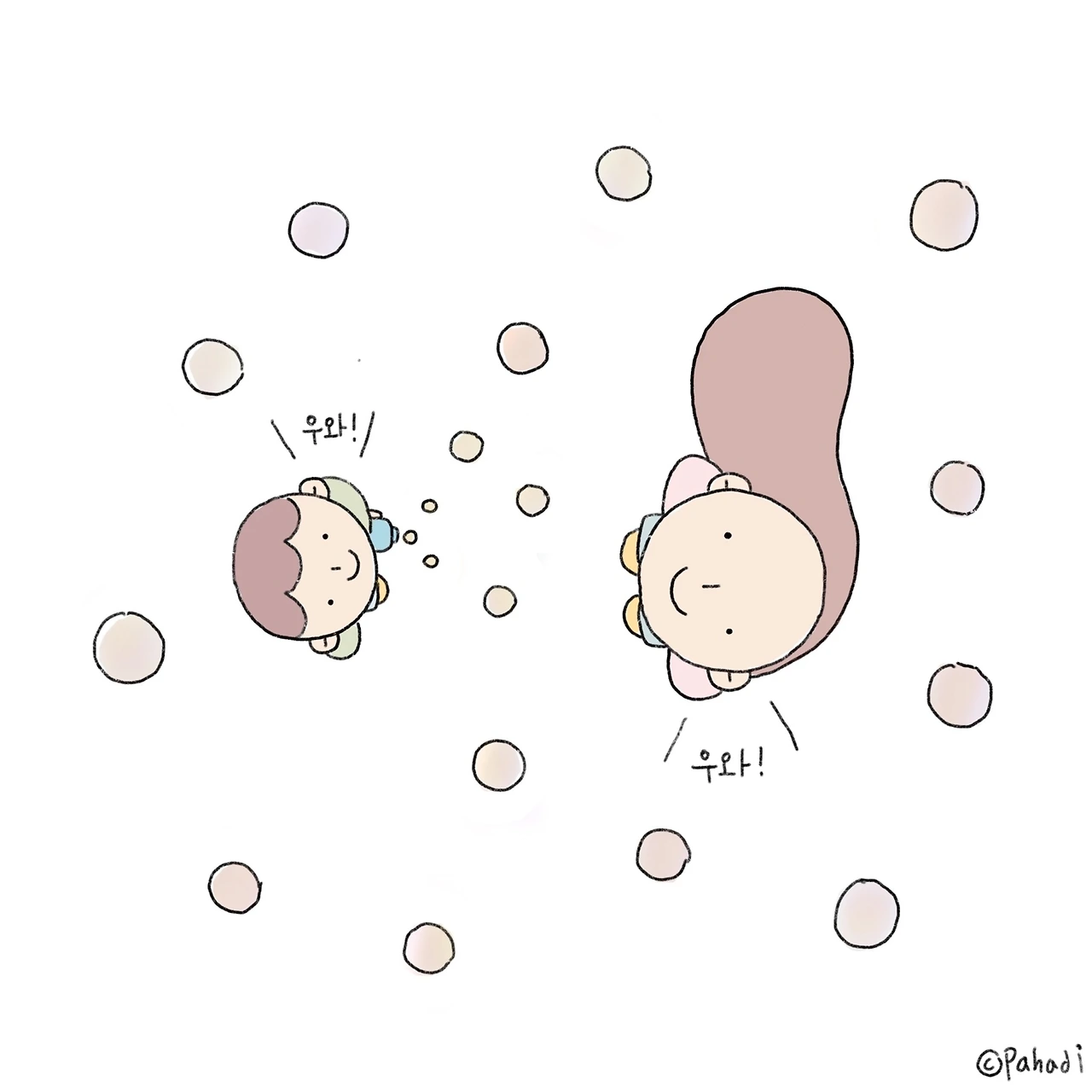 아이에게 물어보면 재미난 대답을 해줄 것 같았다. "비눗방울은 어디 가는 걸까?" 물었다. 구름 속을 여행한다거나, 무지개 미끄럼틀을 타러 간다는 상상력 넘치는 대답을 기대했는데 지극히 현실적인 답변이 돌아왔다. "떡볶이 사러 간대." 뭐야. 너도 인간 세상에 다 적응했구나.