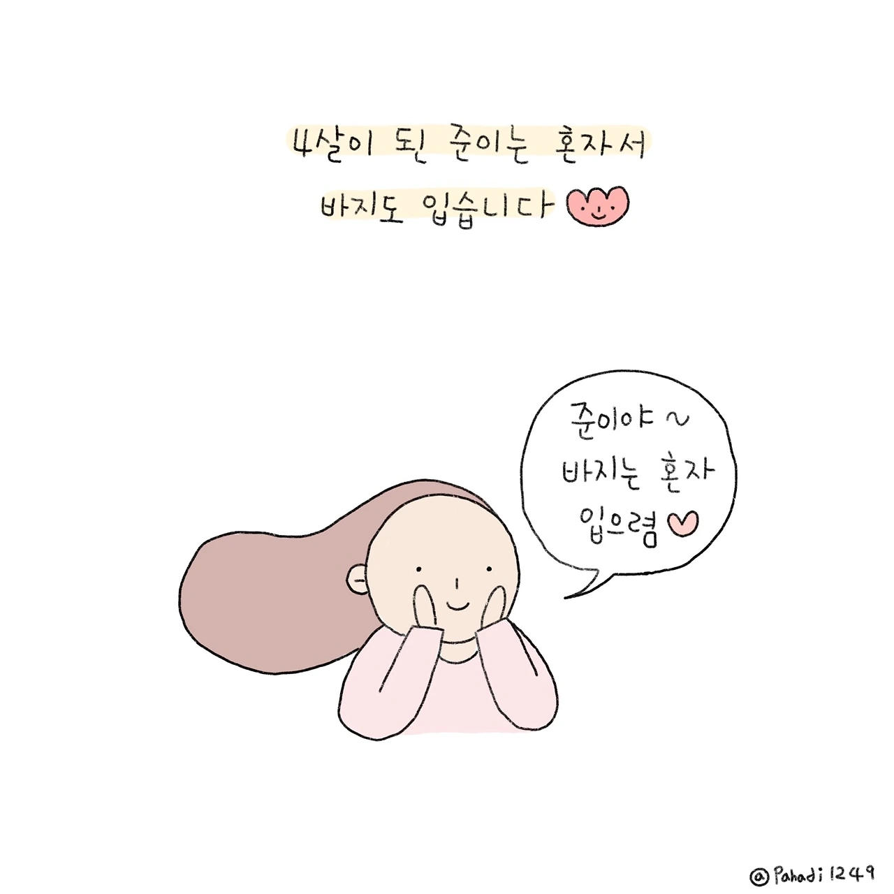 꼬박 3년이 걸려서 준이가 혼자 바지 입기에 성공했다.(아직 윗도리는 못 입음) 그렇게 따지면 매일 혼자 바지와 티셔츠를 입는 우리는 얼마나 대단한가. 심지어 혼자 원피스 뒷지퍼도 올릴 수 있다!