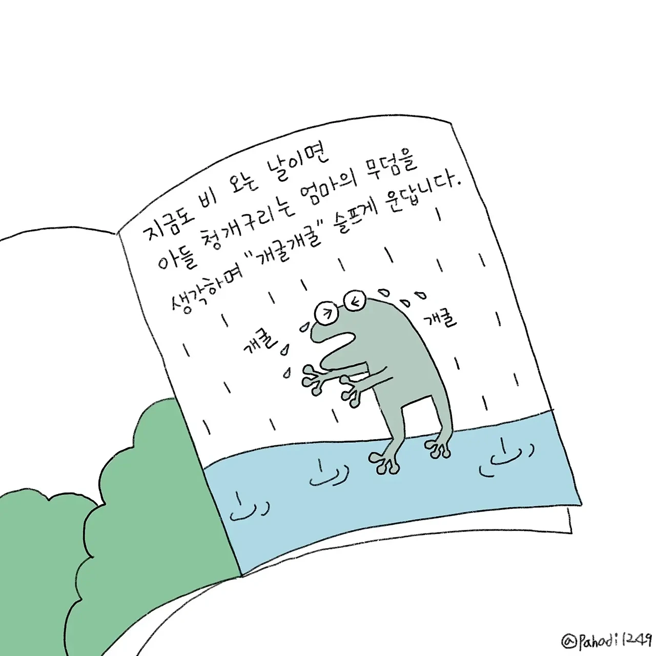 준이에게는 다소 충격적인 이야기였나 봅니다ㅎㅎ 청개구리 이야기는 좀 더 커서 읽기로 해요 :-)