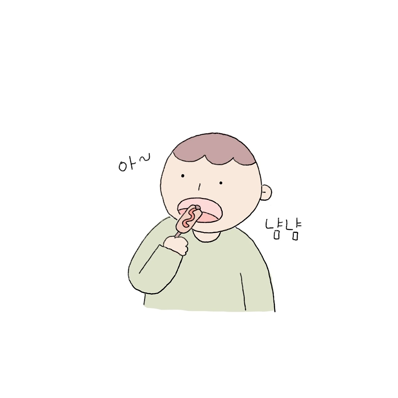 그리고 그 알짜배기를 엄마에게 건넨다. 핫도그 속 소시지는 다른 소시지보다 훨~씬 맛맛있는 게 정설인데 오늘 이 소시지는 맛이 쫌 이상하다.ㅎㅎ