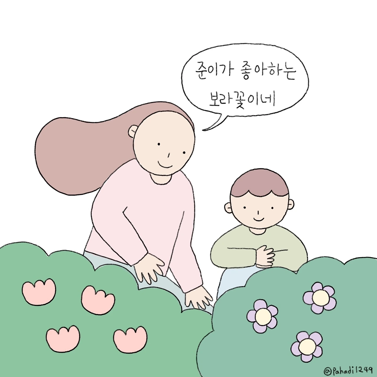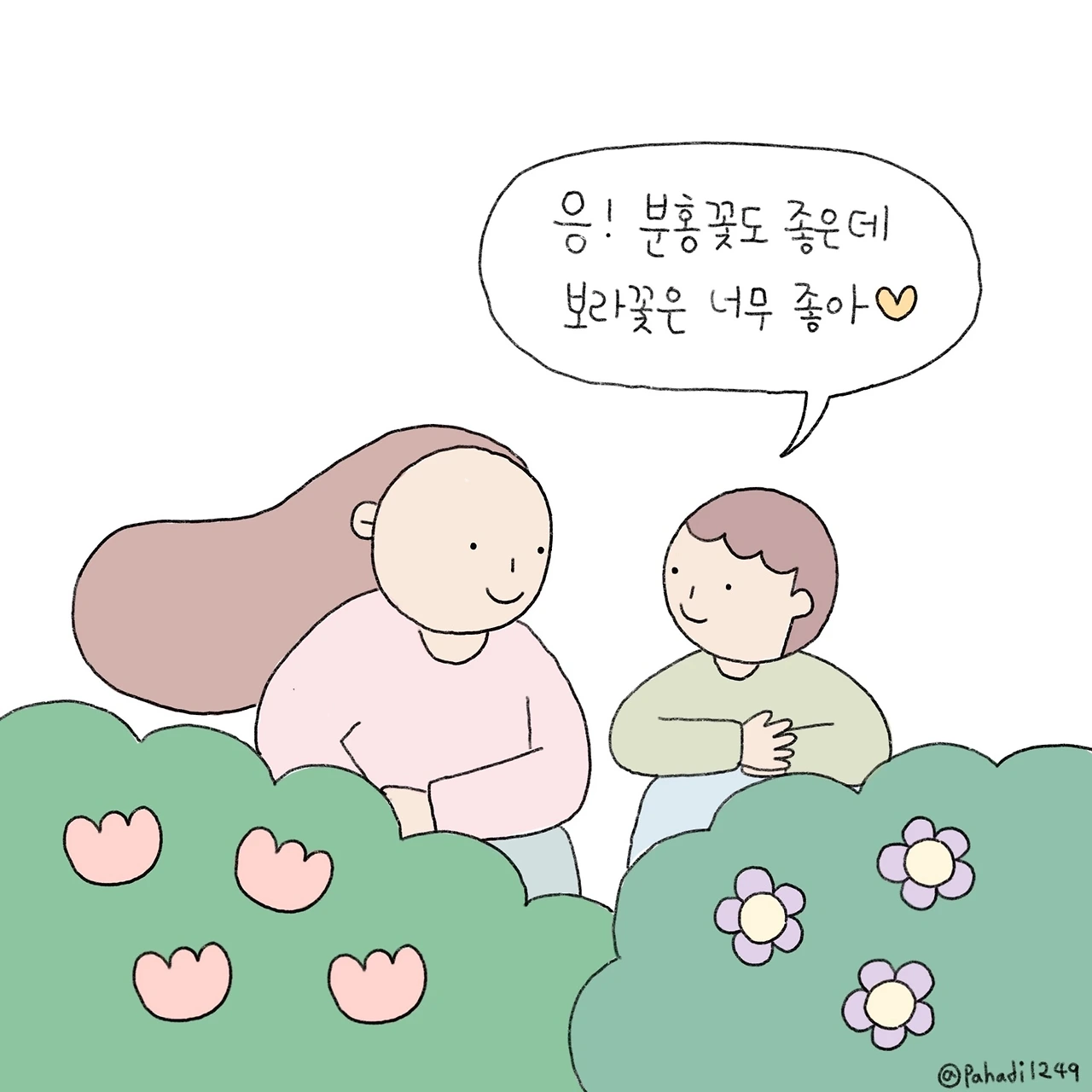 아이는 "좋아"라는 말을 자주 사용한다. 보라색을 좋아하고, 공룡을 좋아하고, 귤을 좋아한다. 아파트 화단에 핀 꽃들을 함께 구경하는데 아이가 말한다. "분홍 꽃도 좋은데 보라 꽃은 너무 좋아." 온 세상이 좋아하는 것 투성이다.
