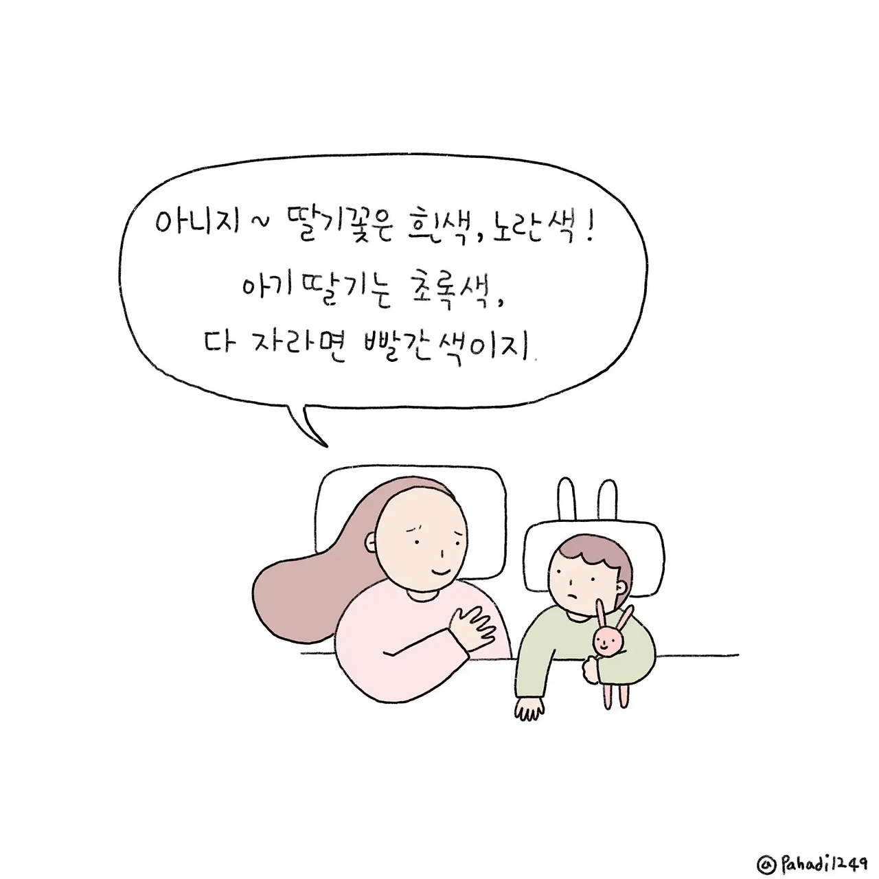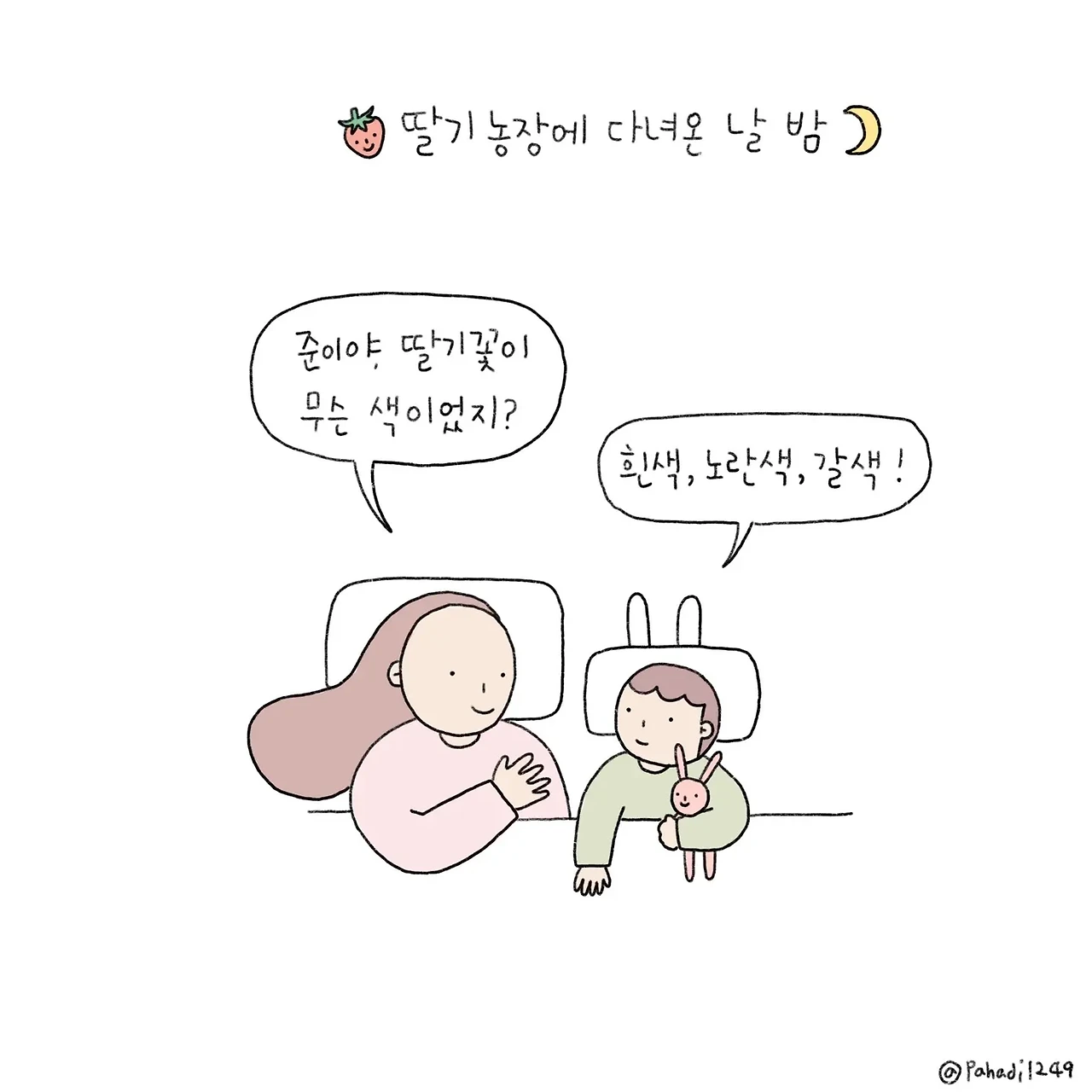 나는 내가 아는 딸기꽃을 보고 아이는 진짜 딸기꽃을 본다. 아는 체해서 미안.