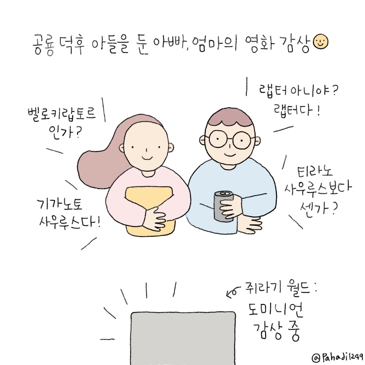 4년째 인생 쓴맛 단맛을 함께 하고 있는 육아 동지 남편. 준이 아빠가 아니면 이런 이야기를 누구와 하겠나ㅎㅎ 36살 + 37살 + 5살 공룡 이야기하며 깔깔대기