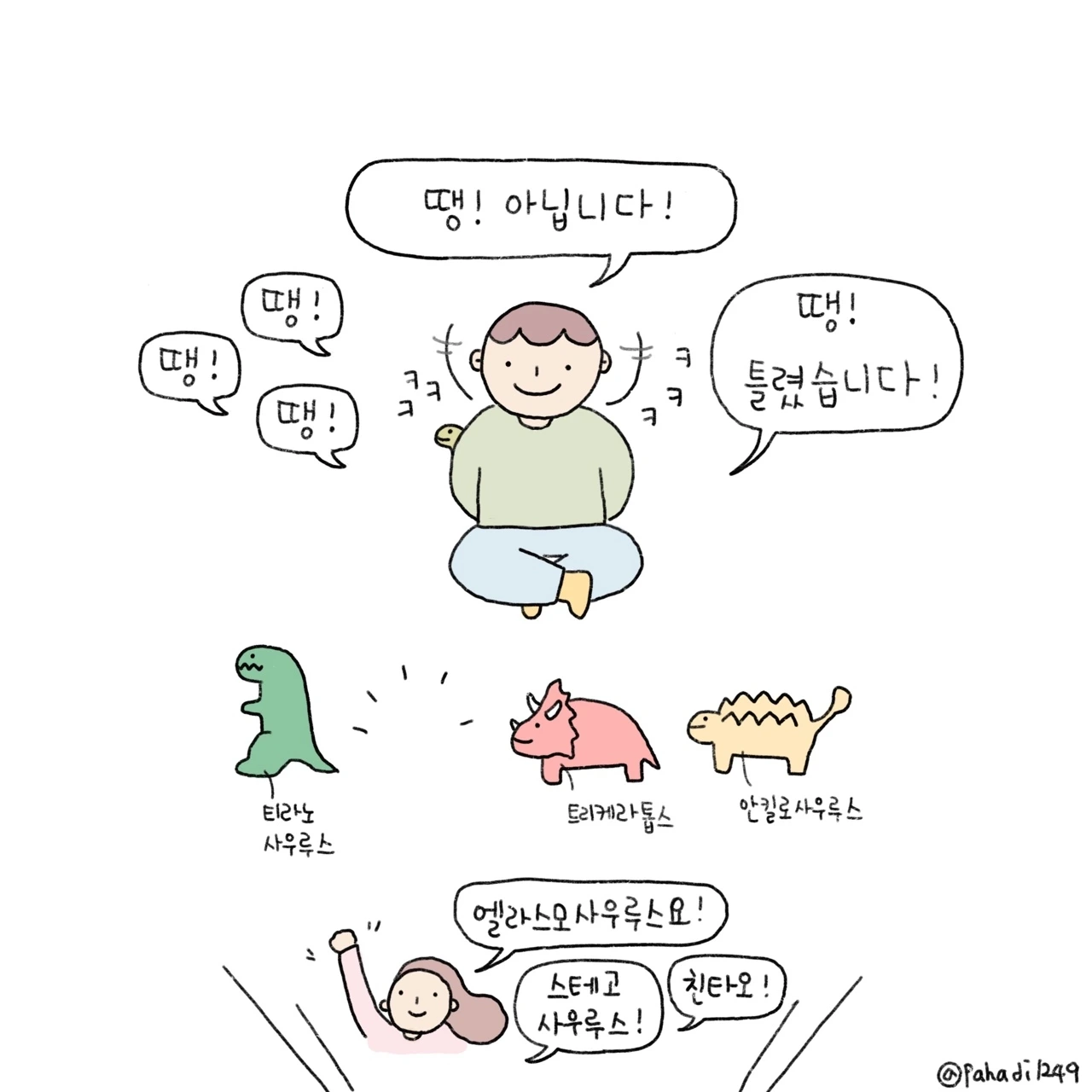 억지로 틀리기도 어렵네요ㅎㅎ 오답 잘 말하려면 공룡 공부 열심히 해야겠어요ㅎㅎ