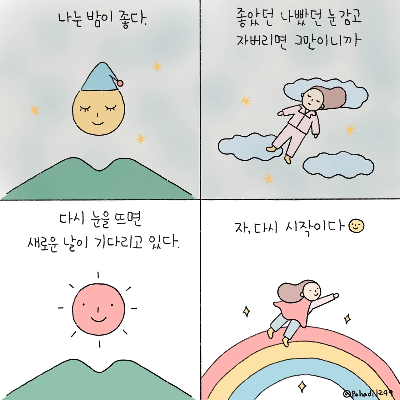 오늘 나의 숨을 공간은 아파트 단지 내 가장 구석에 있는 벤치다. 짧아진 해 덕에 어둑어둑해져 숨기에 더욱 안성맞춤이다. 무거운 가방을 한쪽에 몰아두고 벤치에 넉넉히 앉는다. 먼 산을 보며 미리 사 온 아이스크림 콘 껍질을 천천히 벗겨내고 한 입가득 베어 문다. 뭉근하게 부어오른 마음의 부기가 가라앉길 바라며 달콤하고 차가운 아이스크림을 한 입 더 베어 문다.아이스크림이 어느새 한입밖에 남지 않았다. 아이스크림이 참 많이도 작아졌다. 혈당도 높은데 잘 됐지 싶다가도 집에 가야 할 시간이 다가오니 작아진 아이스크림이 원망스러워진다.