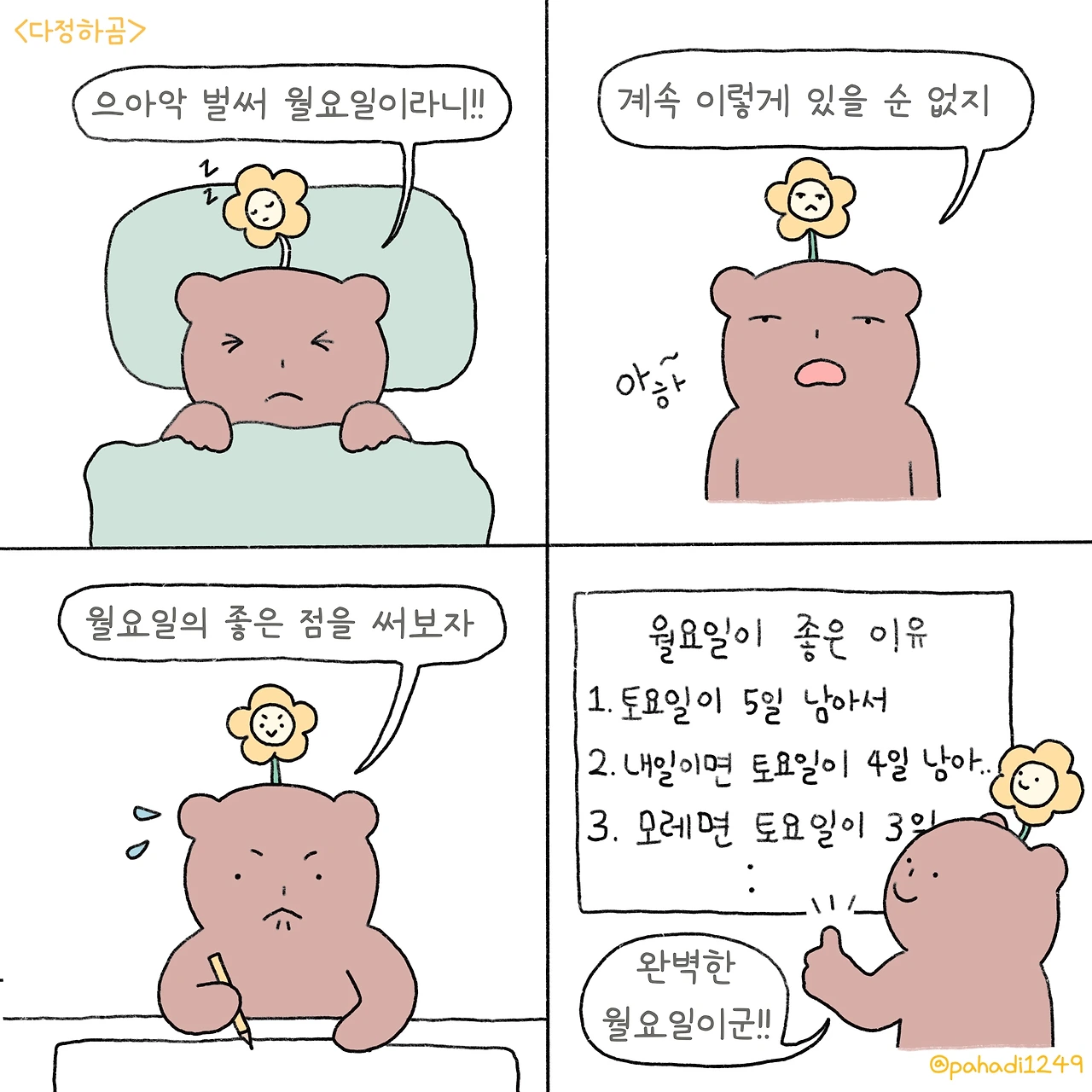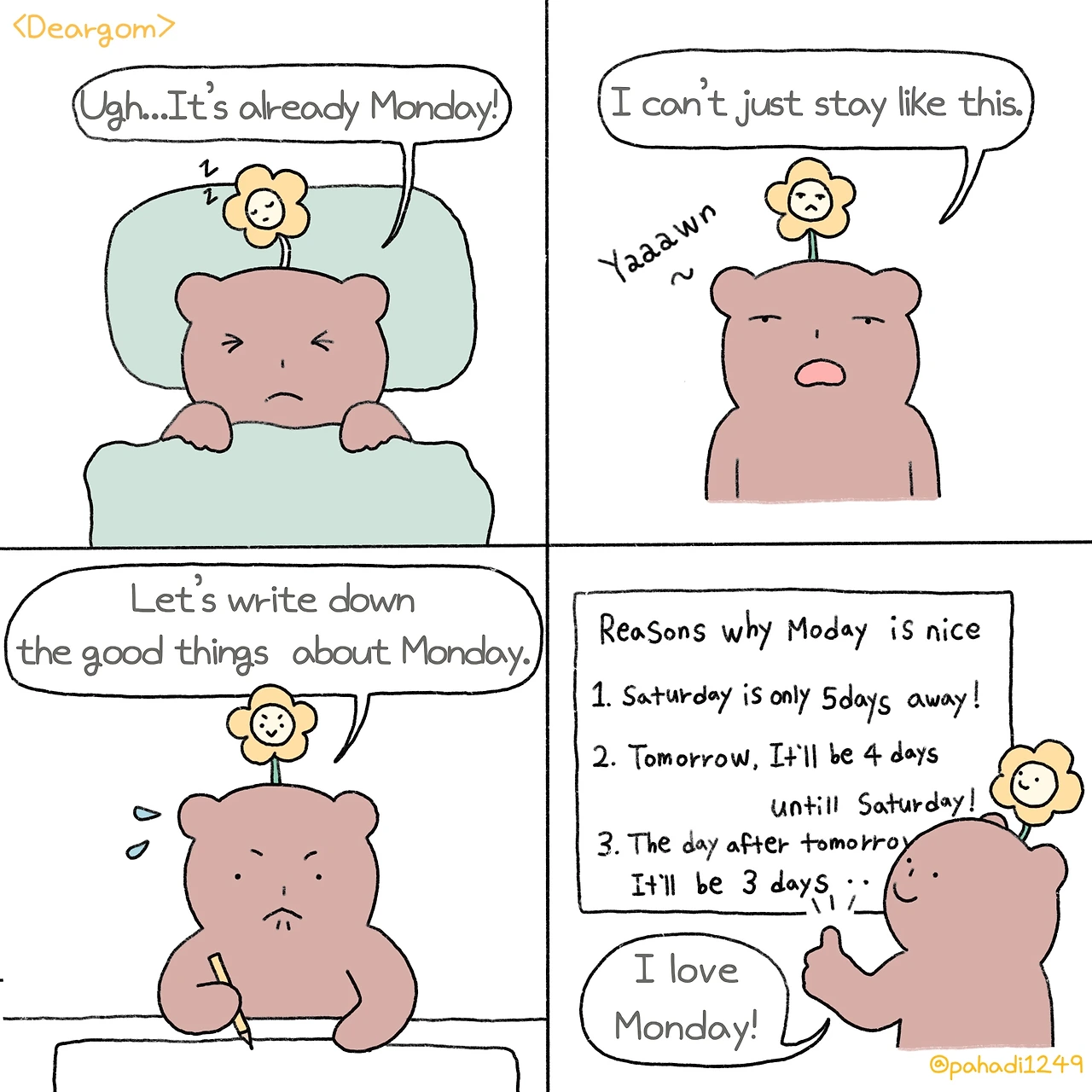 월요일의 좋은 점을 세 가지나 찾았다. 세 번째가 가장 마음에 든다.