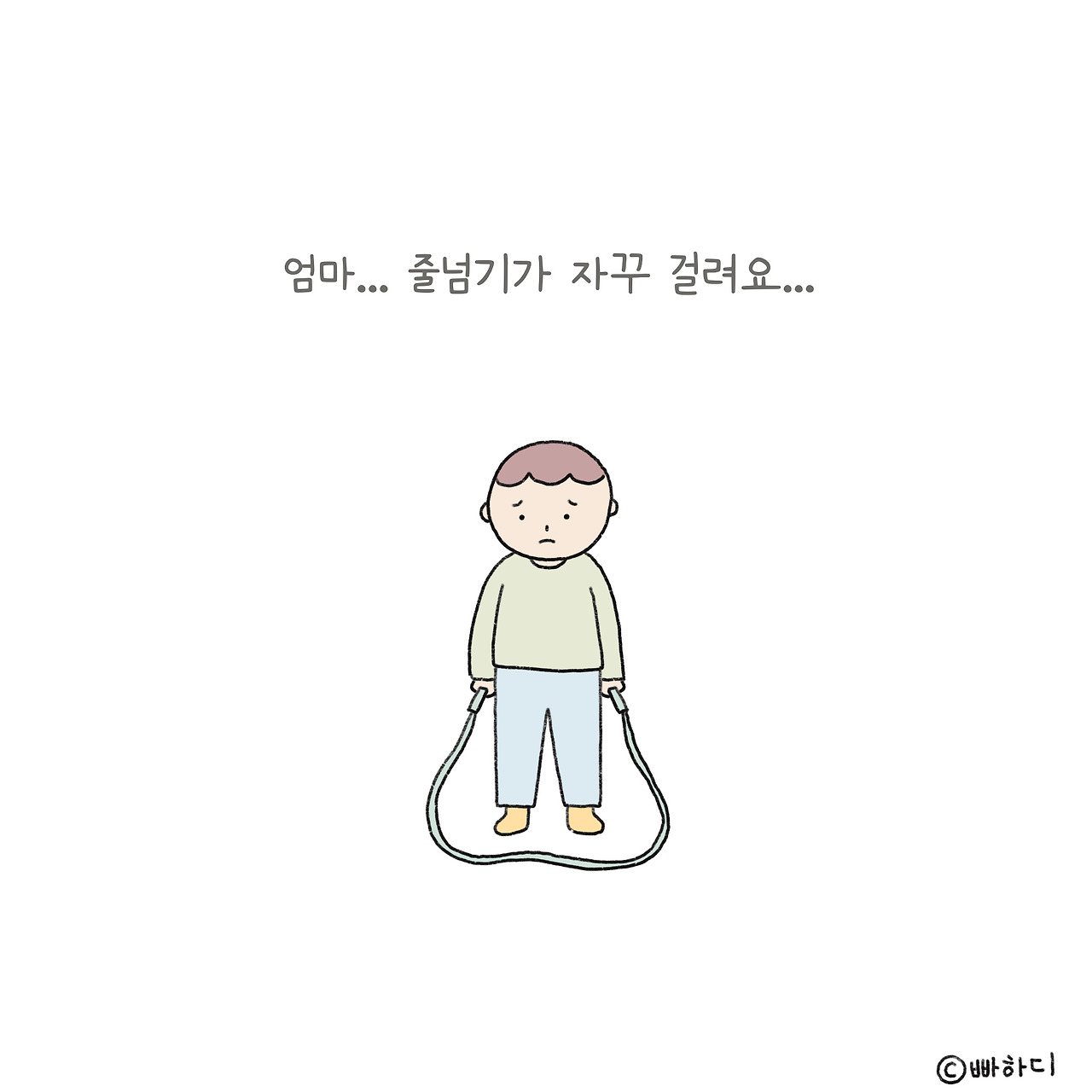 처음 줄넘기를 배우는 아이에게 열심히 하라고 그렇게 훈수를 두었는데 엄마 체면이 안 서면 어쩌지. 하나, 둘 줄넘기를 시작한 아이 옆에서 이리 재고 저리 재며 시간을 끌어본다.