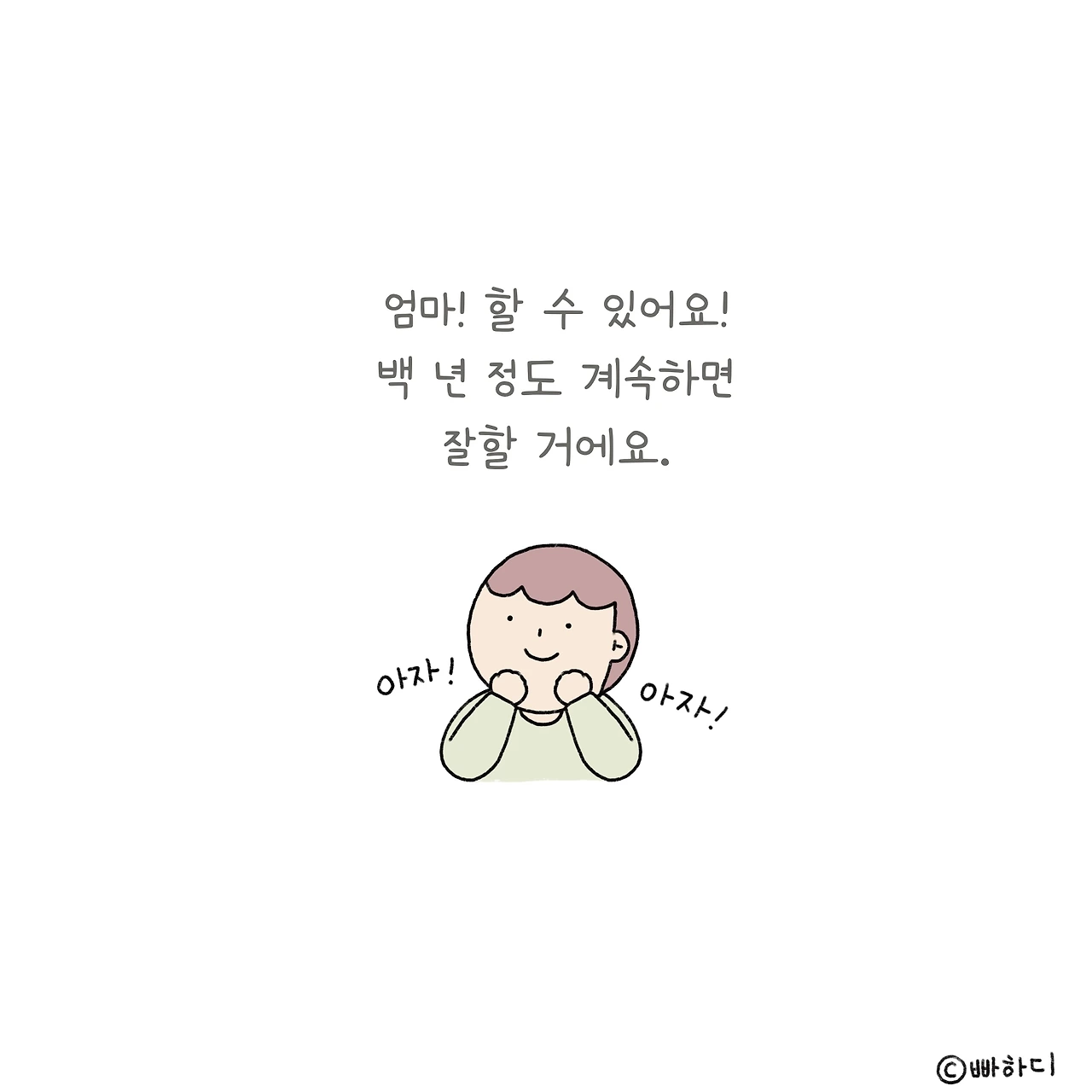 "음.. 엄마, 할 수 있어요. 한 백 년 정도 하면 될 거예요."