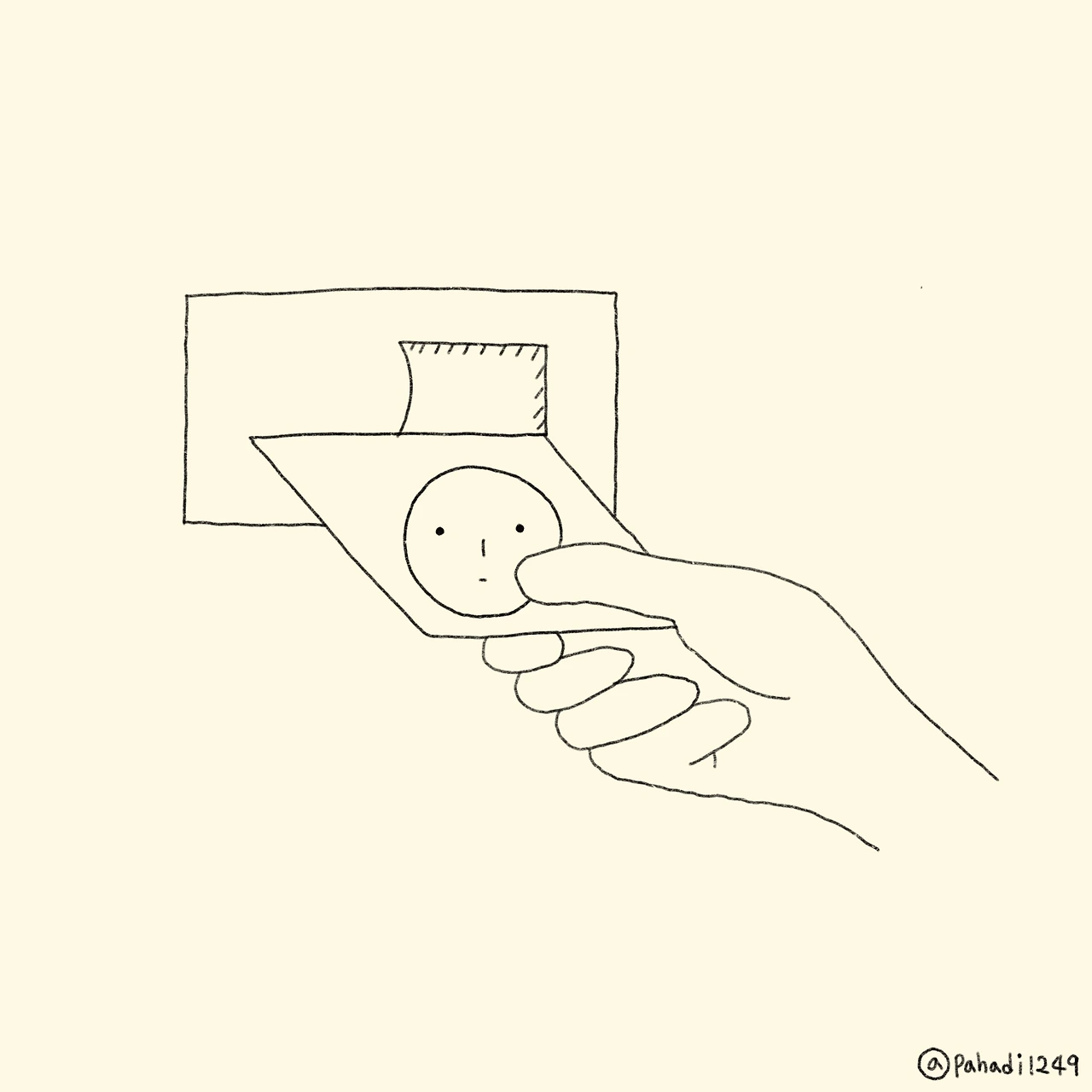 은행에 도착했다. 지극히 인간적인 안내원이 방문 이유를 묻는다. "OTP 카드 재발급받으려고요." 어플로 번호표를 받았다는 자랑스러운 이야기를 꺼내기도 전에 안내원이 말한다. "OTP카드 재발급은 바깥쪽 디지털 셀프 존에서도 가능합니다. 디지털 셀프 존을 이용하시겠어요? 기다리시겠어요?"