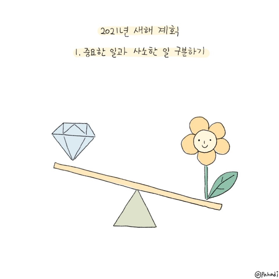 좋은 것을 하기보다 나쁜 것을 하지 않겠다. 좋은 음식을 찾아 먹기보다 나쁜 음식을 줄이겠다. 주 3일 운동하기보다 나쁜 자세를 고치겠다. 좋은 생각을 하기보다 나쁜 생각을 하지 않겠다. 성취하기보다 소중한 것을 잃어버리지 않겠다.