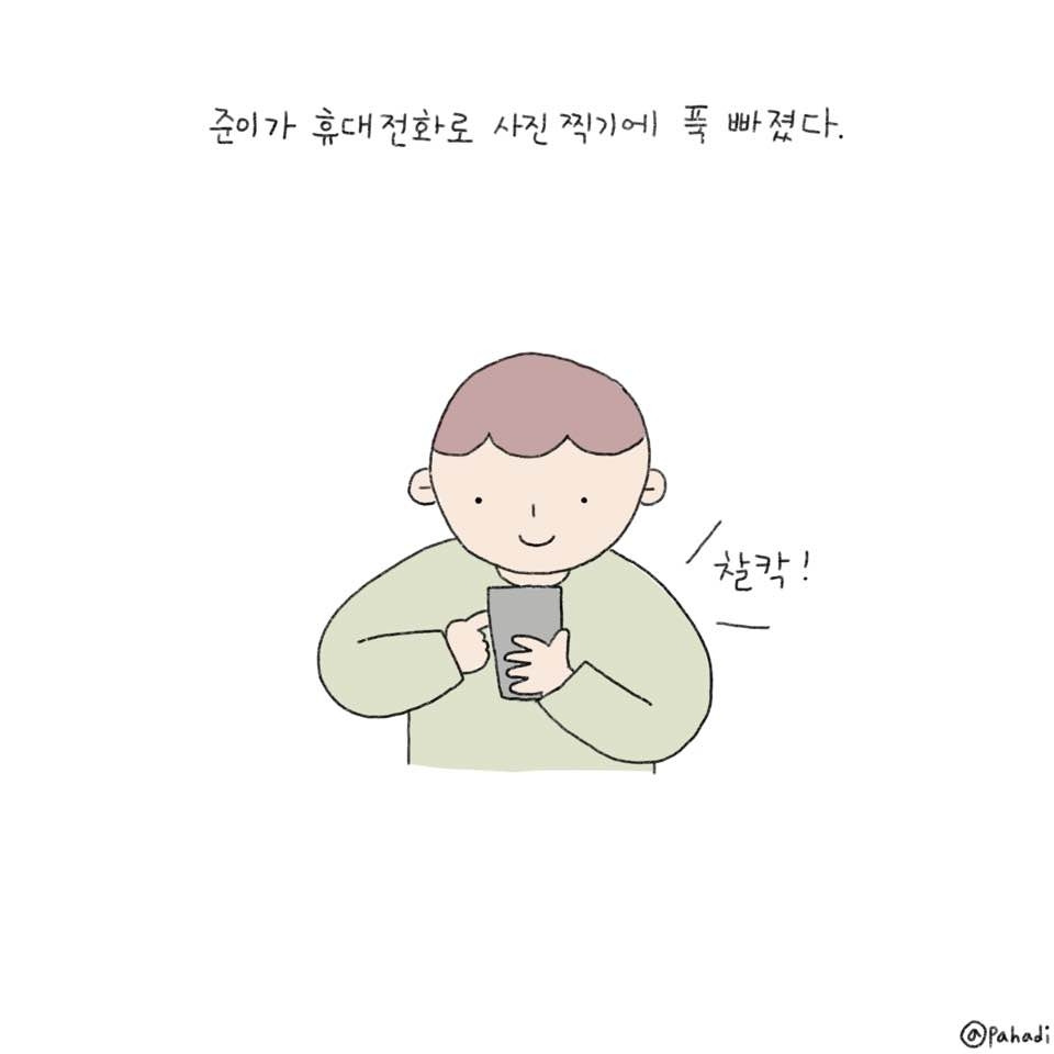 준이. 휴대전화로 사진 찍는데 재미가