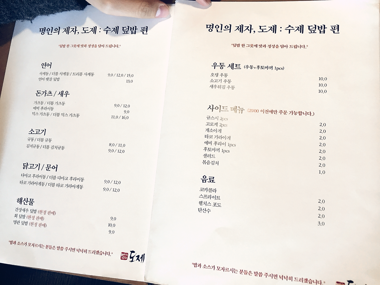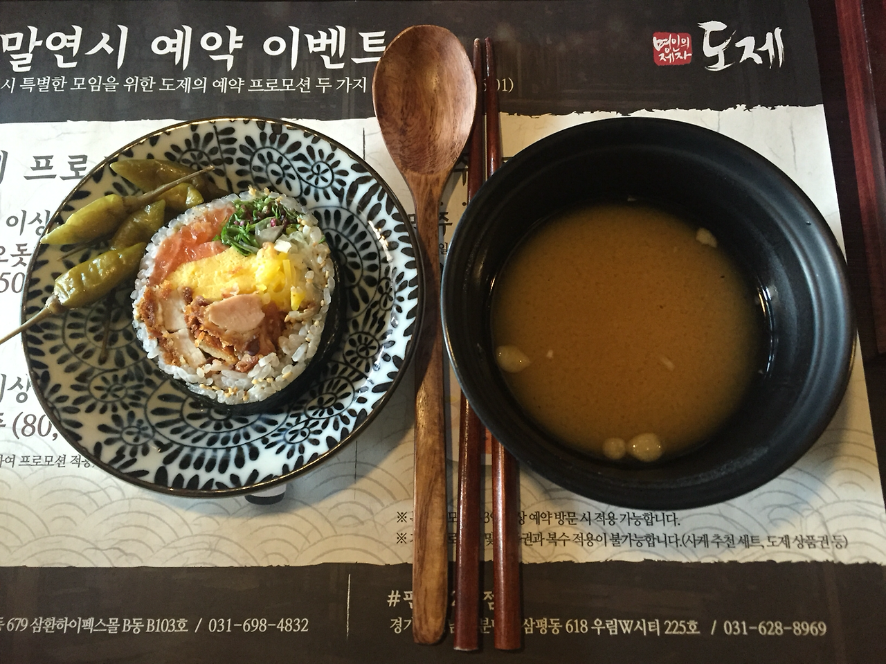1년전 겨울, 생긴 지 얼마 안된 일식당 도제를 소개 받아 처음 갔었다. 그땐 일별 런치 할인 메뉴가 있었고 규동과 가츠동 같은 메뉴를 먹었던 듯. 근데 가츠동이 촉촉하지 않고 퍽퍽하고 메마른 느낌에 단품 하나만 시킨 걸 아는데도 특히 썰렁하고 허전한 식사가 되었던 기억이 난다.