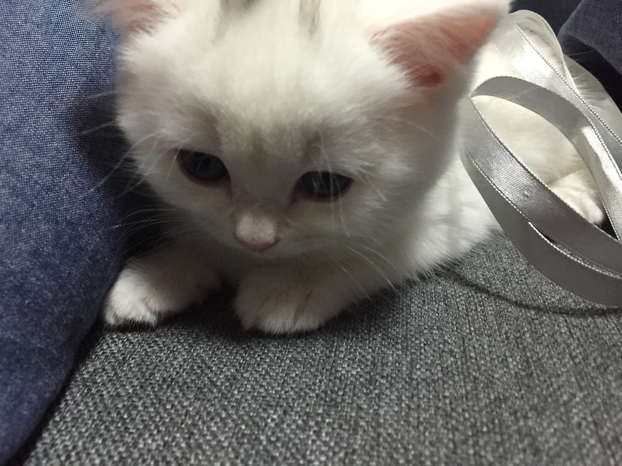 아빠(오늘부터 아빠?) 다리 사이에 자리 잡은 아이. 정말 조그맣다. 첫날은 어디서 재워야할지 몰라 일단 쇼파에서 잠이 든 아이를 보드라운 담요를 동그랗게 덮어주고 그대로 두었다.