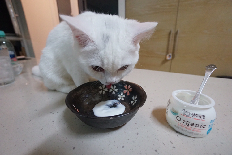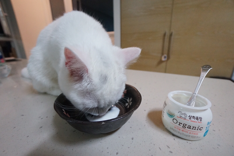 요거트나 우유는 락토프리가 아니면 설사를 할 수 있다고 하던데, 플레인 중에 첨가물이 없는 것으로 먹이니까 딱히 설사는 하지 않고, 솜이가 너무 좋아해서 일주일에 한번은 간식으로 주는 듯.