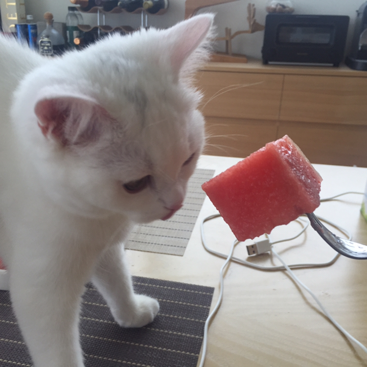 과일은 인터넷 검색해보고 먹여도 괜찮은 것만, 먹다가 나눠줘 봤다. 수박, 메론, 참외 류.