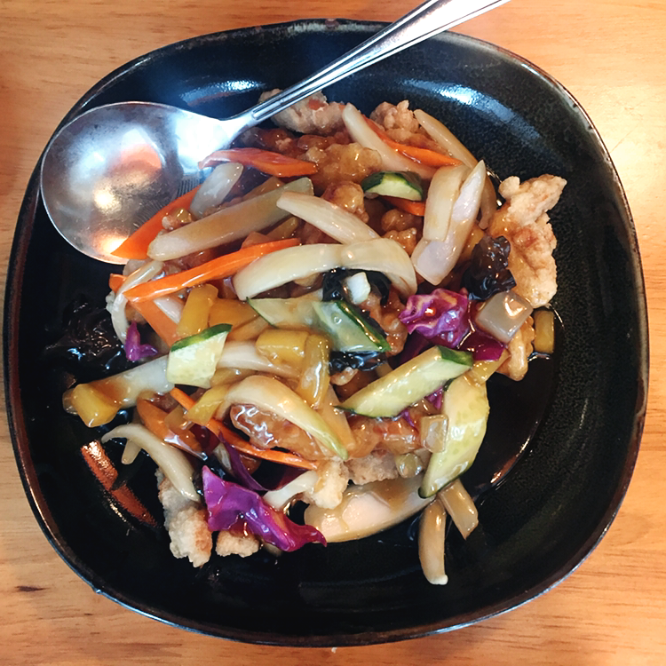 중국식냉면은 처음 먹어봤는데 땅콩소스와 겨자가 섞인 짭쪼름하고 새콤달콤한 소스가 맛있었다. 야채와 고명이 많고 새콤달콤해서 일본냉우동이랑 비슷한 느낌도 들고.