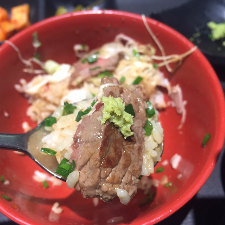 매장의 대표 메뉴인 걸로 보이는 스테이크 덮밥을 주문했는데 곁들여먹는 와사비 양념장이 신의 한수. 양념된 밥 위에 양배추와 고기를 얹고 와사비 양념장을 곁들여 한입에 넣으면 꽤 훌륭하다. 밥에 섞어져있는 양념도 짜거나 심심하지 않고 딱 적당한 정도였음. 굉장히 균형있는 맛이 나는 식사였다.