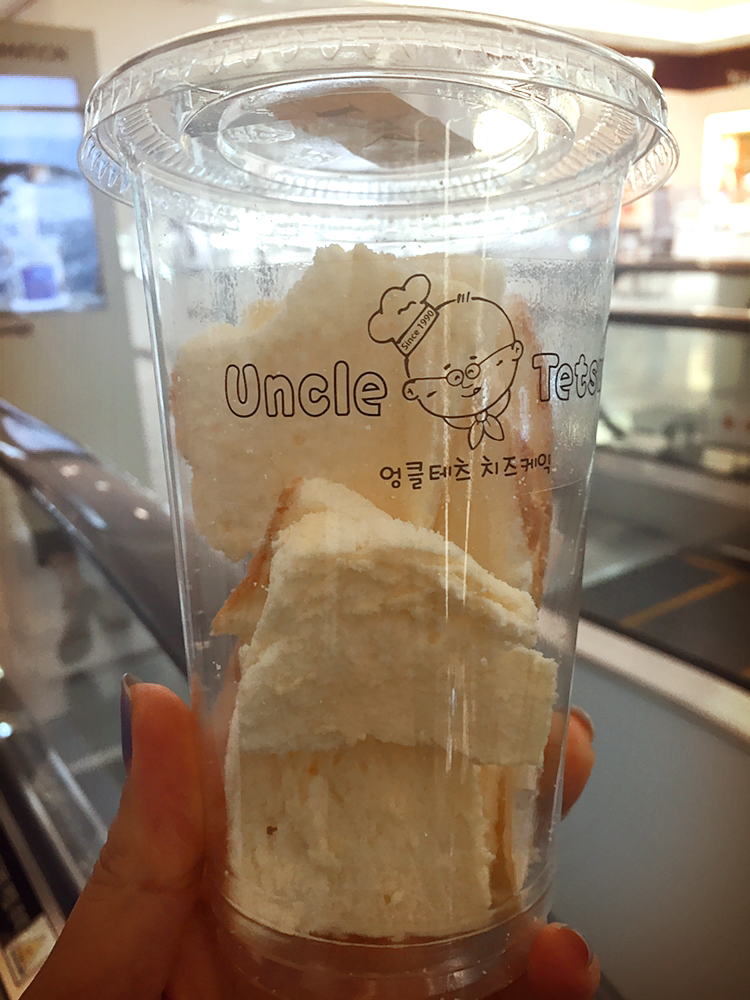 치즈케잌을 구워서 파는 거였는데 식감이 신기했음. 아주 딱딱하지는 않지만 쿠키 같은 질감의 바삭한 치즈케이크.