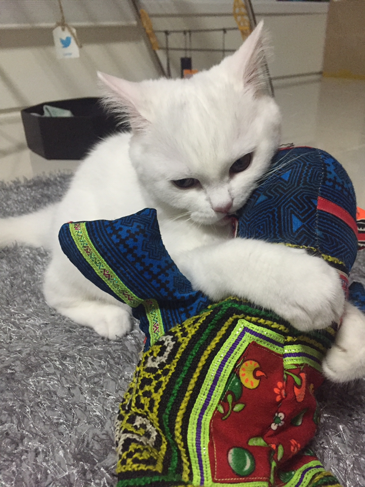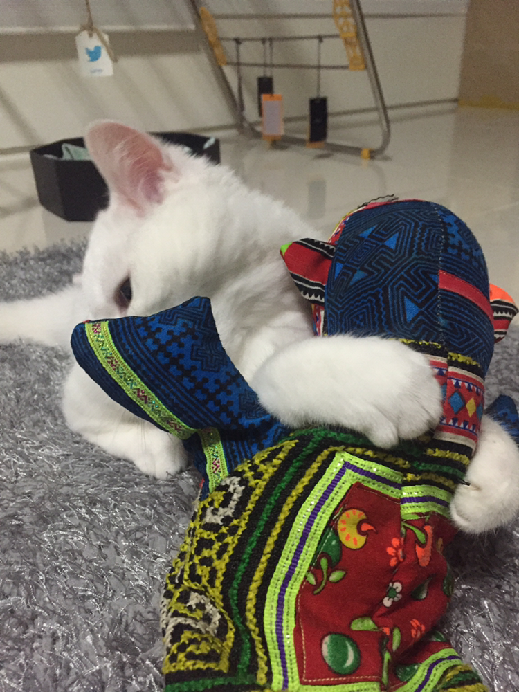 솜이의 물고 뜯는 전용 인형. 선물받은 - 바다 건너 온 손인형인데, 왜인지 모르게 물고 뜯는 인형으로 인식이 되어버려서 갖다 대기만 해도 안고 물고 발로 차느라 과격해진다. 손을 넣고 움직이는 모양이 흥미를(입맛을) 돋구는 걸로 추측.