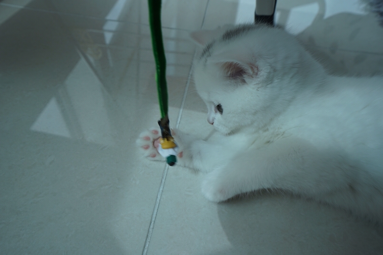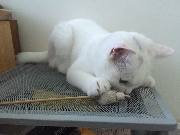 나무 막대기 끝에 천연 누에고치가 붙어있고, 그 안에는 캣잎과 마따따비 열매가 달랑달랑 소리를 내며 굴러다니고 짧은 끈이 달려있는데. 캣잎과 마따따비 향 때문인지, 누에고치 때문인지. 아무튼 엄청 좋아한다. 막대를 카페트 위에서 이리저리 그으면 카페트의 털이 물결치는 모양도 좋아하는 것 같다. 막대기를 커텐이나 이불 사이, 카페트 아래에서 왔다갔다 움직이면 그것도 너무 좋아함. 4800원 밖에 안 하는데 망가지면 또 사줘야지 ㅋ