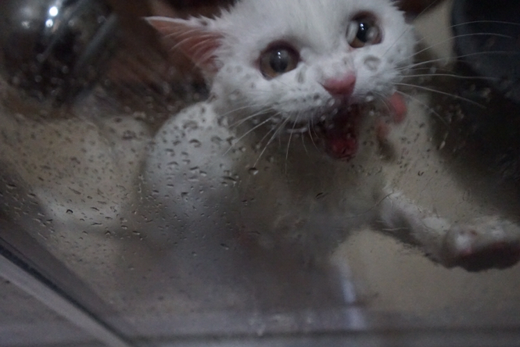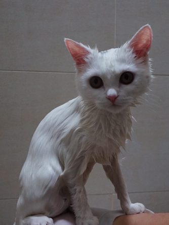 목욕의 과정 중에서 물이 차 있는 대야에 몸을 담그는 걸 제일 싫어하는 듯. 샤워기에 놀라는 고양이는 물을 받아놀고 손으로 끼얹어주면 된다는데 솜이는 샤워기나 손으로 끼얹는 것의 차이는 없어보임.