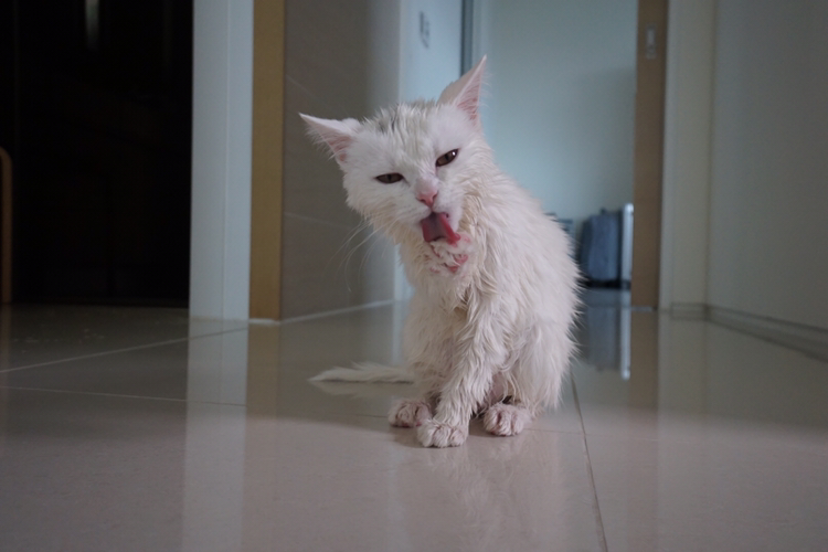 신기하게도 그루밍을 하면 털이 마른다. 뭐지 물기를 혀로 먹는 건가. 혀와 목이 아프지 않을까 싶을 정도로 온 몸을 꼼꼼히 그루밍.