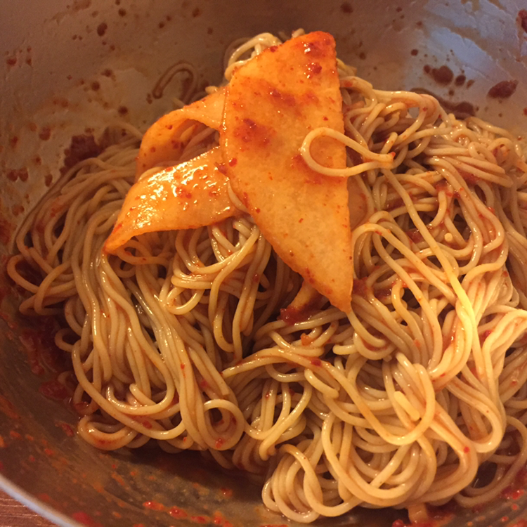 막국수는 메뉴판에는 비빔막국수만 나와있는데, 옆 테이블에서 물막국수가 되냐고 물어보니 주문은 되는데 추천하진 않으신다고 하시는 듯. 비빔막국수도 무절임 3장, 배 1 조각 그리고 양념장이 전부인 단촐한 스타일이라 물막국수가 이 스타일로 나오면 정말 심심할 것 같기도 하공. 비빔막국수에 삼삼한 열무김치와 곁들여 먹으니 삼삼한 아이들끼리 잘 어울렸다. 열무김치는 포장으로도 팔고 있음~