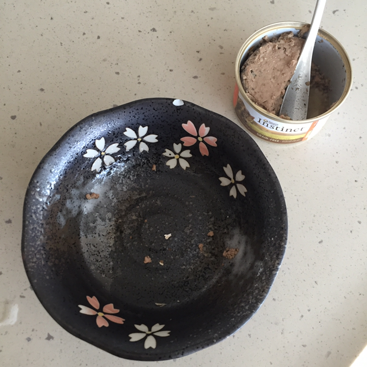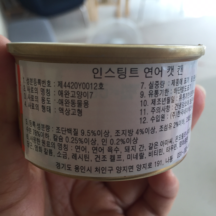 오랫만에 줬더니 너무 좋아함. 전엔 생식본능 캔 하나 따서 3분의 1을 겨우 먹었었는데 오늘은 2분의 1을 허겁지겁 먹고 바닥에 떨어진 것도 주워먹고... -ㅁ-