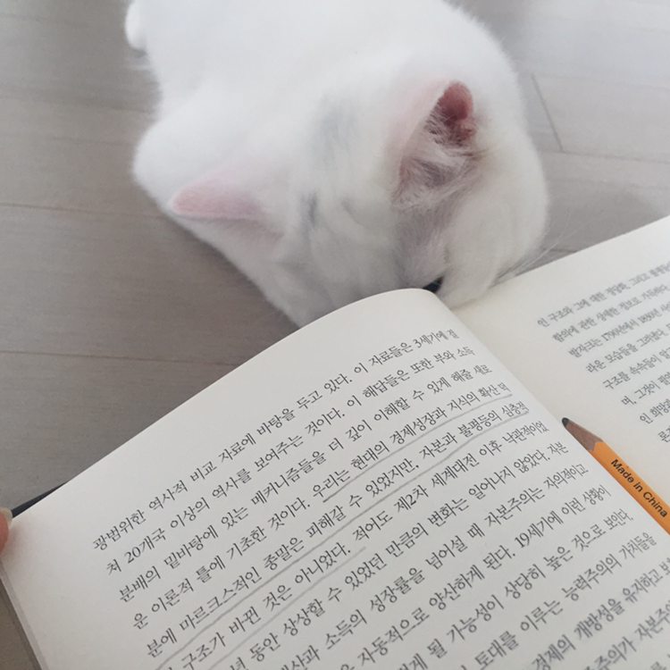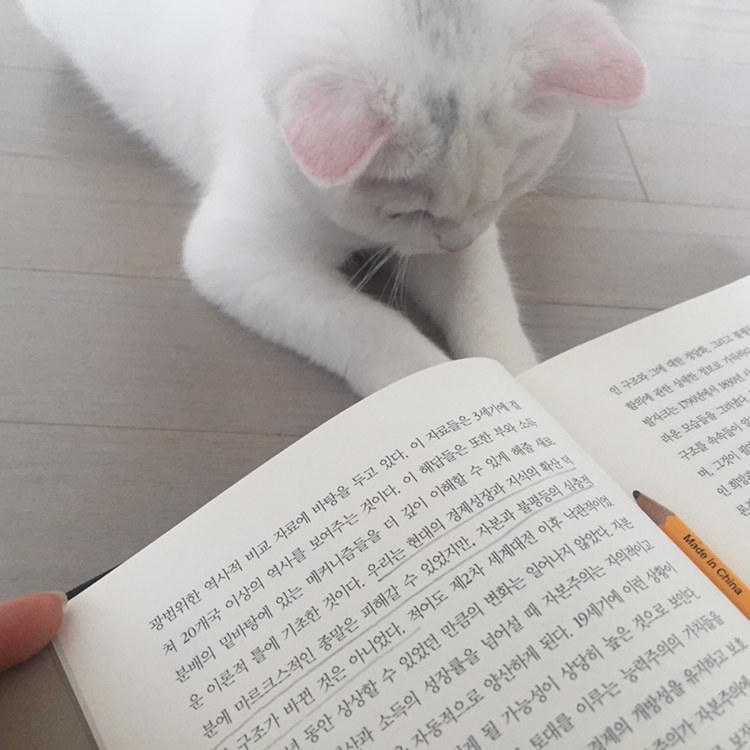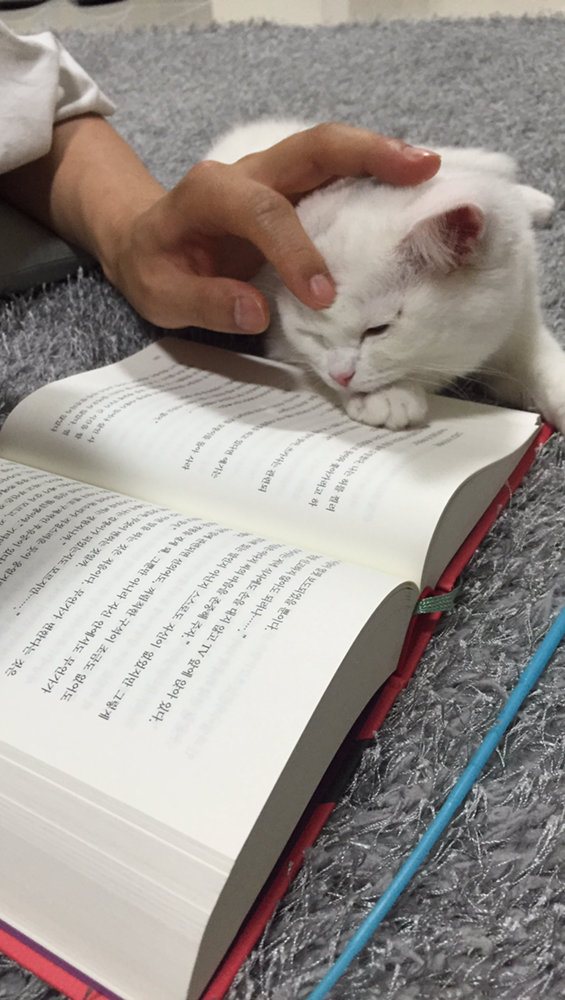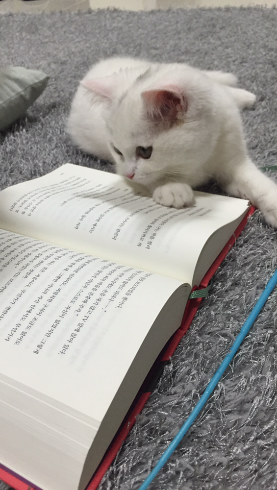 책을 보는 건지 고양이를 보는 건지