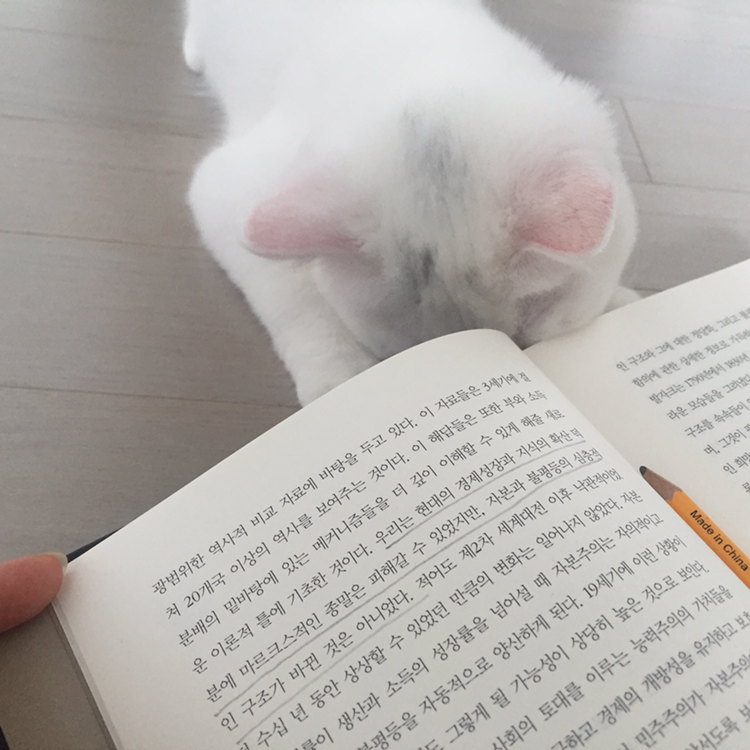 여튼 그래서 요즘 책을 통 못 읽는다는 핑계를 ㅋㅋ 솜이랑 놀다보니 책을 잡을 기회도 잘 안 나고 어쩌다 책을 들어도 어느샌가 다시 고양이랑 놀아주고 있어서 진도가 잘 안나간다.