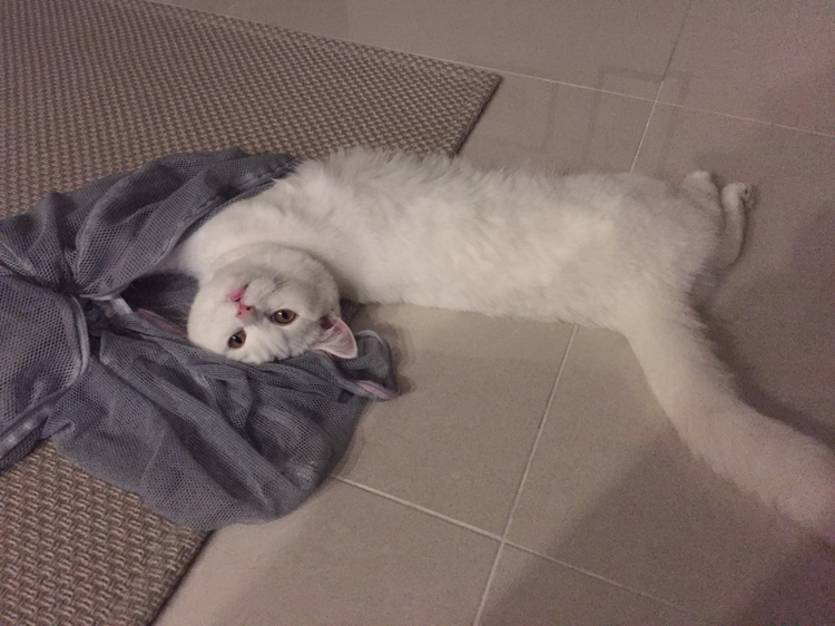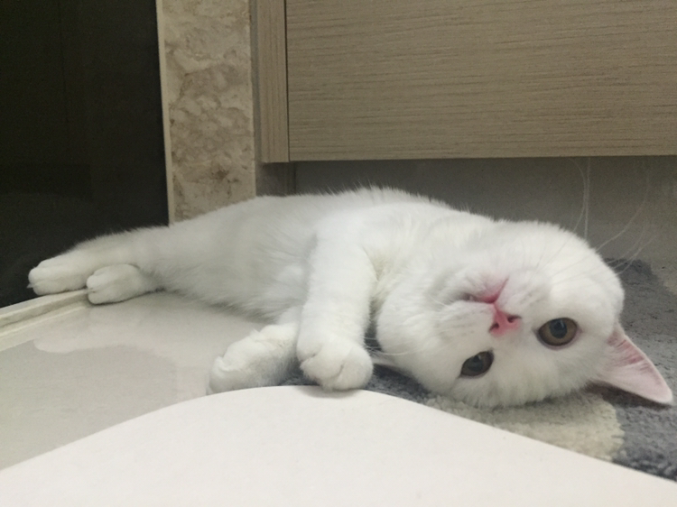 하지만 신뢰하는 대상 앞에서는 데구르르 거꾸로 뒤집어져서 배를 보이고 딩굴거린다. 솜이도 나른하거나 한가롭고 만족스러운 기분이 들 때 그러는 것 같다. 배를 만져도 잠시 가만히 있어준다. (오래 참지는 않음 ㅋ 금방 도망가버리는)