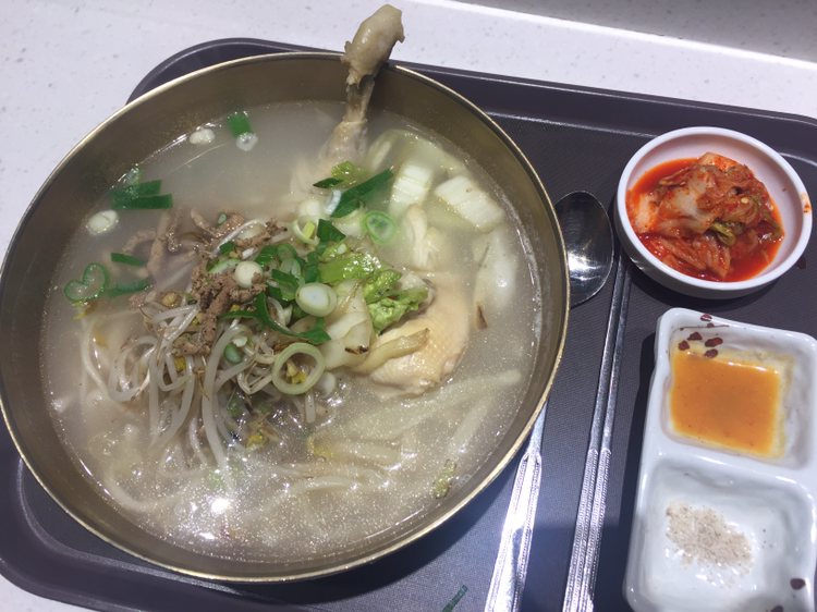 닭고기는 겨자 소스나 소금에 찍어먹고, 고춧가루가 굵은 칼국수 집 김치가 곁들여 나온다.
