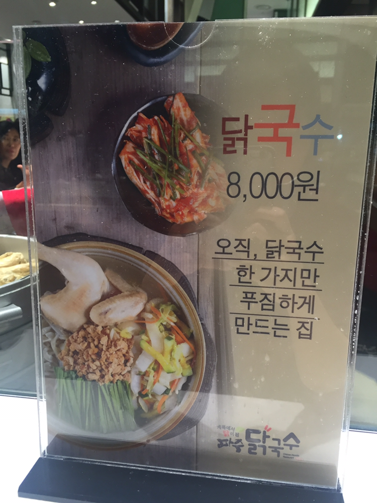 오랫만에 현대백화점 지하 식품관에서 점심을 먹었다. 파주닭국수 라는 집인데, 불맛나게 볶은 고기와 야채, 숙주나물이 듬뿍 들어있어 나가사끼 짬뽕을 먹는 느낌이 드는 칼국수였다. 작은 닭 반마리가 들어있고 국수 면발은 둥글게 두꺼운 편.