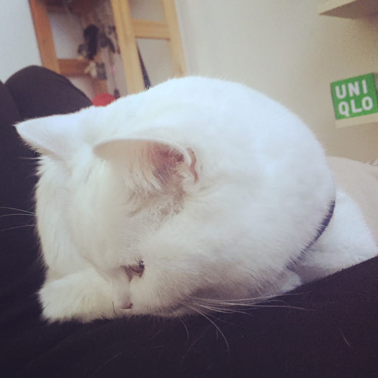 배 위에 올려놓으니 가만히 앉아있는 솜이. 따뜻하고 귀여운데, 천방지축 뛰어다니지 않는 솜이가 어색하고 짠하다.