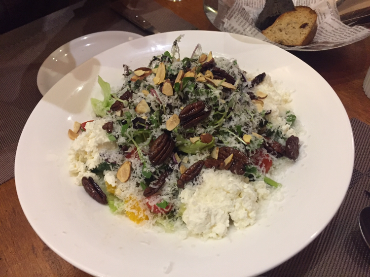 샐러드는 리코타치즈샐러드로 골랐는데 오늘 코스 중에 제일 만족스러웠던 메뉴였다. 견과류 안 좋아하는데도 튀긴 호두가 식감이 너무 좋았고 리코타 치즈도 포슬포슬한 느낌이 좋았음.