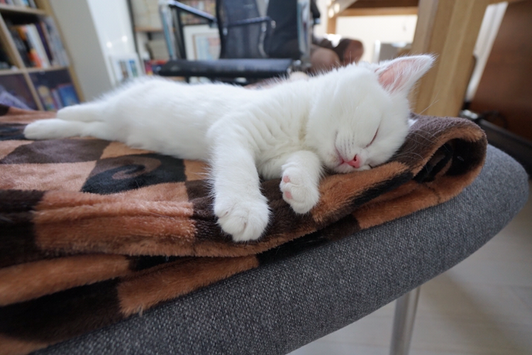 솜이는 멀리서 달려와서 내 다리를 살짝 물거나, 손으로 내 몸을 툭 치고 나서 전력을 다해 도망간다. 살랑살랑 옆에 와서 몸을 비빈다. 애옹애옹 불러서 따라가면 밥을 먹으러 간다. 밥을 먹으면서 한번씩 뒤를 돌아 나를 확인한다. 내 베개 위 머리 옆에 꼭 붙어서 그릉거린다. 이런 존재를 어떻게 예뻐하지 않을 수 있을까.