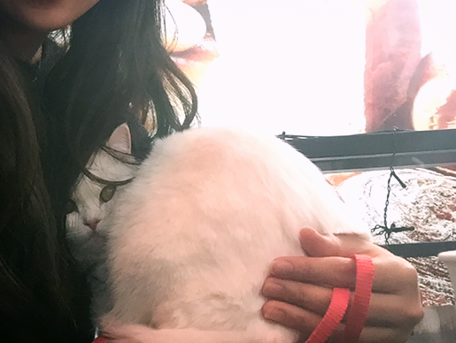 처음 깨달은 건 지난 주말, 병원에 심장사상충 예방접종을 다녀오다가 들른 까페에서. 주변이 시끄러운지 가슴팍으로 자꾸 얼굴을 파묻더라.